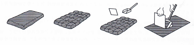 4.2.4棋盤法:適用于鋸屑和其他能用鏟勺處理的小顆粒樣品。將全部樣品置于清潔并堅(jiān)硬的表面上并用鏟勺混勻。用鏟勺將樣品散布成長方形堆,堆的厚度不超過物料標(biāo)稱最大粒度的3倍,用鏟勺在長方形堆的表面上輕輕劃線,分割出不少于20個(gè)部分。用鏟勺和擋板從20個(gè)部分中的每一部分取子樣,每次取樣鏟勺都插入到堆的底部。結(jié)合子樣到所需量的試樣。